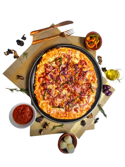 Nossa pizza romana é conhecida por sua massa excepcionalmente fina, tão fina quanto uma “folha de papel”, mas com uma crocância que é simplesmente inesquecível.